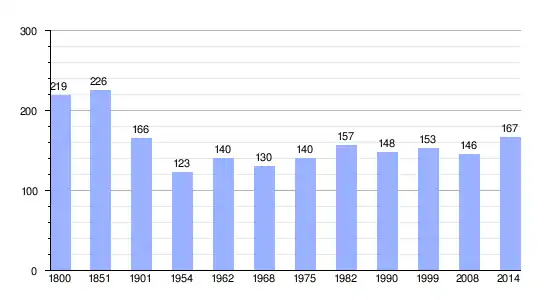 Gráfica de evolución demográfica de La Poterie-au-Perche entre 1800 y 2014 |