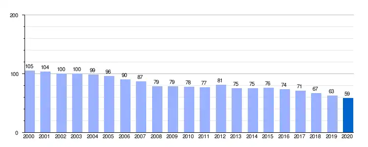 357 | 608 | 591 | 603 | 545 | 555 | 566 | 600 | 536 | 401 | 249 | 189 | 157 | 144 | 117 | 114 | 113 | 106 | 105 |