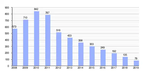 Gráfica de evolución de Deuda viva del Ayuntamiento de Puebla de los Infantes (La) entre 2008 y 2019 |