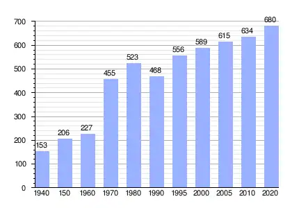 Población de los censos y conteos del Instituto Nacional de Estadística y Geografía (INEGI).[6] |