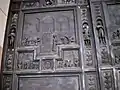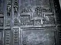 La puerta está construida en bronce, mide 4 metros de alto, por 2,5 metros de ancho y 1200 kilogramos de peso. Cada hoja de la puerta pesa 600 kilos.[1]