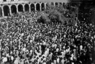 A las 3 de la tarde se convocó, por las diferentes emisoras locales, a una reunión de Cabildo Abierto en el local de la Municipalidad, iniciando la reunión con la presencia del Dr. Francisco Mostajo, a horas 8:30 de la noche aproximadamente. Salió una Comisión Parlamentaria de la Municipalidad, integrada por los señores Dr. Javier Belaúnde, Carlos Bellido, Dr. Arturo Villegas y Arnoldo Guillén. De esa comisión fueron gravemente heridos por disparos el Dr. Arturo Villegas y el Sr. Carlos Bellido, muriendo ambos. Esta comisión salió con una bandera blanca en misión de paz a fin de evitar la masacre de un pueblo desarmado y poner punto a los trágicos sucesos. Esto enardeció al pueblo conglomerado en la Plaza de Armas y siguieron las escaramuzas entre la policía y el ejército contra un pueblo desvalido y sin armas.