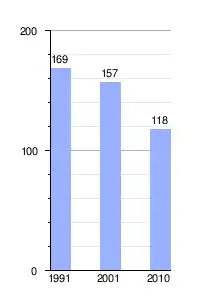 Gráfica de evolución demográfica de La Rica entre 1991 y 2010 |