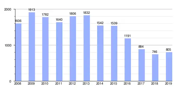 Gráfica de evolución de Deuda viva del Ayuntamiento de Roda de Andalucía (La) entre 2008 y 2019 |