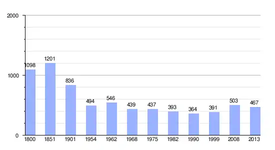 Gráfica de evolución demográfica de La Romaine entre 1800 y 2013 |
