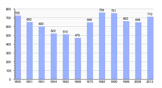 Gráfica de evolución demográfica de La Rouge entre 1800 y 2013 |