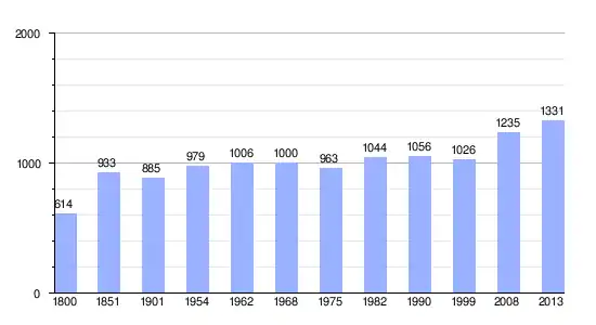 Gráfica de evolución demográfica de La Salle-et-Chapelle-Aubry entre 1800 y 2013 |