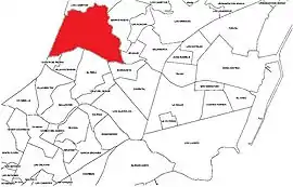 Norte: Los Campitos Este: Barrio Nuevo y Uruguay Sur: Buenavista, El Perú, Villa Ascensión y Cuesta de Piedra Oeste: La Cuesta | |