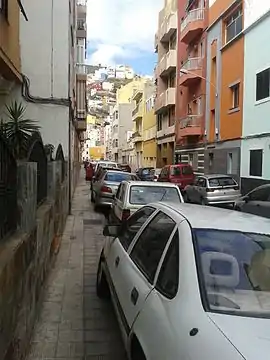 ![]() Calle Mencey Ventor. Al fondo, en la montaña, Barrio Nuevo. | ||