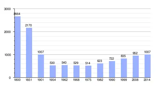 Los datos demográficos contemplados en este gráfico de la comuna de La Sauvagère[4] se han cogido de 1800 a 1999 de la página francesa EHESS/Cassini, y los demás datos de la página del INSEE.[5]