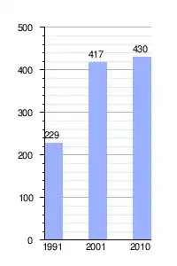Gráfica de evolución demográfica de La Serranita entre 1991 y 2010