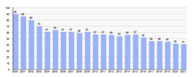 Gráfica de evolución demográfica de La Silva entre 2000 y 2021 |