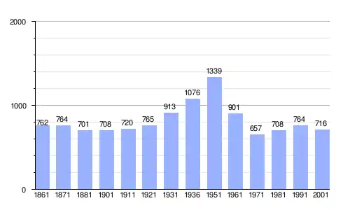 Gráfica de evolución demográfica de La Thuile entre 1861 y 2001 |