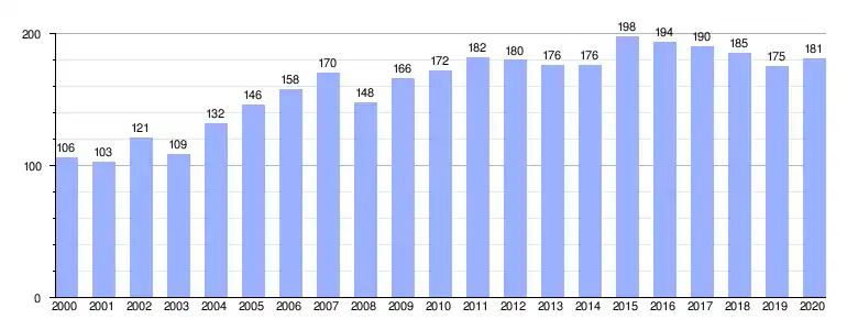 Población de derecho (2001-2020) según los censos de población del INE a 1 de enero de cada año.[4] |