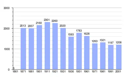 Gráfica de evolución demográfica de La Valle Agordina entre 1861 y 2001 |