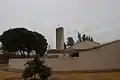 Este conjunto está compuesto por dos elementos, uno de ellos reservado a labores administrativas y el otro a clínica médica, que mantienen un eje direccional con la iglesia y las escuelas. Se refuerza así la forma hexagonal sugerida por la plaza de viviendas al convertirse en un edificio esquina dentro de la plaza. Destaca especialmente la torre-edificio de planta octogonal, destinada como sala de reuniones y que cumple también la función de depósito de agua.