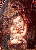 Al fallecer la dueña del cuadro, la familia dispuso prestarla a los vecinos del sector, para que la tuvieran itinerantemente en su casa. Durante la visita del Obispo de Popayán (por esa época Popayán era la capital del Estado Soberano del Cauca, de la cual era jurisdicción la población), la imagen se encontraba al cuidado de la señora Bernardina Rebellón, quien aprovechó la ocasión para presentarle el cuadro al Prelado para que este decidiera sobre la autenticidad del mismo y a la vez le atribuyera una advocación, ya que hasta el momento solo se le conocía como La Virgen aparecida de la niña Bonifacia. El Prelado le asignó el nombre de "La Virgen de los Santos" y ordenó que la imagen no debería estar en casas particulares sino en el templo.[20]
