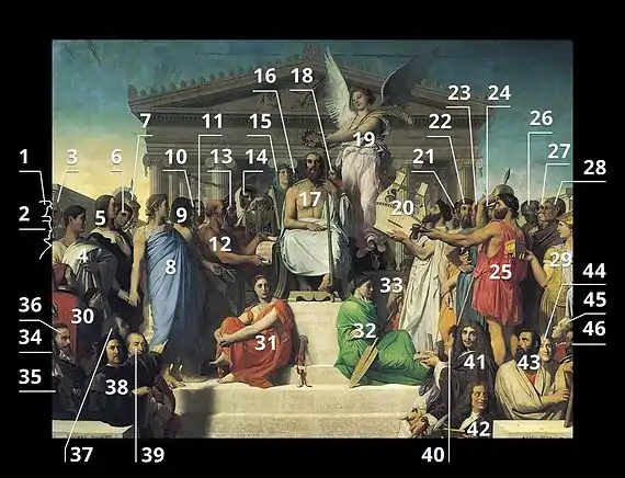 Wikimedia Commons alberga una categoría multimedia sobre el cuadro de Ingres La apoteosis de Homero.