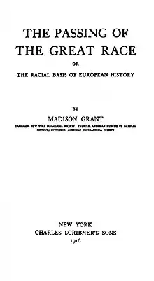 La caída de la gran raza (título original en inglés:The Passing of the Great Race). Es un libro de 1916 del eugenista, abogado y antropólogo aficionado estadounidense Madison Grant.[1] Grant expone una teoría de la superioridad racial nórdica y defiende un fuerte programa eugenésico.[2]