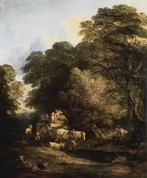 Gainsborough es célebre por sus retratos y por sus paisajes, evidenciándose en esta obra su interés por el paisaje, anticipándose al tratamiento del tema por John Constable. Es uno de los últimos paisajes de Gainsborough. Se mostró al público en primer lugar en casa del artista en Pall Mall en 1786, el mismo año en que se pintó. Gainsborough añadió la figura de un leñador cogiendo un haz de leña al año siguiente.