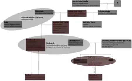 Son las que definen la fuerza y la debilidad de cada metabarón: Othon, el castrado, es el paladín de la galaxia, pero no puede tener hijos hasta que conoce a Honorata, una poderosa bruja que consigue quedarse embarazada con una sola gota de su sangre. El hijo de ambos, Aghnar, resulta ser capaz de levitar en el aire, por eso su padre mutila sus pies sustituyéndolos por unas botas metálicas que le permiten mantenerse en el suelo. El hijo de Aghnar, Cabeza de Hierro, es el caso más extremo, su padre le arranca la cabeza y se cría con un cerebro cibernético que le impide tener sentimientos, hasta que encuentra la cabeza del último poeta de la galaxia y se la coloca, lo cual le permite conquistar el corazón de Doña Gabriela. Cuando están esperando mellizos el parto se complica y Cabeza de Hierro debe implantar el cerebro del niño en el cuerpo de la niña para que al menos uno de ellos sobreviva, así nace Aghora, quien años más tarde, atrapado en el cuerpo de una mujer, decide mutilarse sus pechos con cirugía láser, su padre la reconoce como un legítimo heredero cuando esta le permite amputar su mano con una laminadora de cecinas sin mostrar otra expresión más una lágrima involuntaria a pesar de la lenta agonía que significó y a su vez, le priva a su hijo el derecho a tener una identidad, destruye sus sentido del gusto y le arranca una oreja clavando de inmediato a pulso el implante en su cráneo.