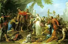 La toma de Cartagena, episodio clave de la segunda guerra púnica en la península ibérica, se narró por primera vez en las Historiae de Polibio (mediados del siglo II a. C.);[1] y se desarrolló posteriormente en la literatura latina (Tito Livio, Floro, Silio Itálico, Apiano, Dion Casio),[2] con secuelas hasta el siglo VI. Como tema iconográfico aparece en la pintura del Renacimiento, y continuó siendo muy desarrollado por la pintura de historia hasta el siglo XIX.