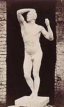 En un principio, llevaba una lanza en la mano izquierda, de hecho se puede observar un surco destinado a sujetarla. La obra se expuso en el Círculo Artístico en Bruselas en enero de 1877, aunque la lanza fue removida. Con este desnudo masculino de tamaño natural Rodin se dio a conocer en París al presentarlo al Salón de París en 1877. La idea era representar a un hombre que encarnara el espíritu de un ser primitivo en su máxima pureza.[4]