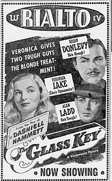 La llave de cristal (en inglés, The Glass Key) es una película estadounidense de cine negro de 1942 basada en la novela del mismo nombre de Dashiell Hammett. La película fue dirigida por Stuart Heisler, protagonizada por Brian Donlevy, Veronica Lake y Alan Ladd (quien interpreta el papel principal a pesar de ser el tercero en los créditos). En 1935 se estrenó una exitosa versión cinematográfica anterior protagonizada por George Raft en el papel de Ladd.[1] El reparto secundario de la versión de 1942 incluye a William Bendix, Bonita Granville, Richard Denning y Joseph Calleia.