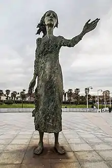 La obra en bronce representa a una mujer, de pelo encrespado y vestido pegado al cuerpo por el viento, con la mano extendida, en un adiós, y la mirada hacia el mar, lugar por el cual desaparecieron sus hijos, esperando su regreso mientras sufre expuesta a los elementos del Mar Cantábrico.