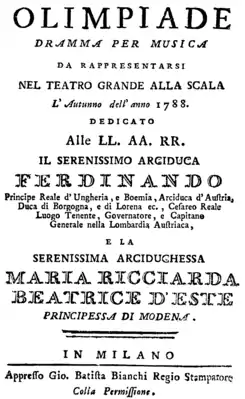 Metastasio tuvo gran influencia en los compositores de ópera desde principios del siglo XVIII a comienzos del siglo XIX. Los teatros de más renombre representaron en este período obras del ilustre italiano, y los compositores musicalizaron los libretos que el público esperaba ansioso. La olimpiada fue uno de los que más éxito obtuvieron, pues fue utilizado por más de 50 compositores como libreto para sus óperas.[6][7][8]