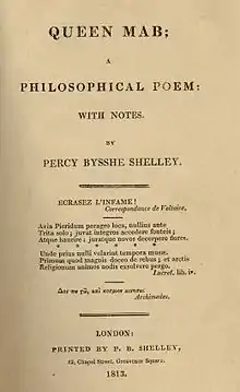 Queen Mab; A Philosophical Poem; With Notes (La reina Mab; un poema filosófico, con notas), publicado en 1813 en nueve cantos y con diecisiete notas, fue la primera gran obra poética publicada por Percy Bysshe Shelley (1792-1822), el poeta romántico inglés.[1] La reina Mab es un hada de las leyendas británicas medievales.