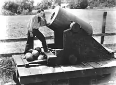 ![]() Fotograma de El maquinista de La General, de la misma escena del fotograma de la portada del libro. | ||