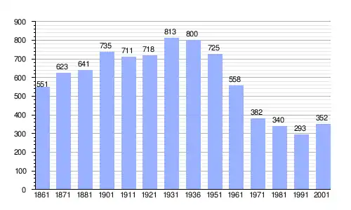 Gráfica de evolución demográfica de Labro entre 1861 y 2001 |