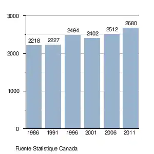 b. Statistique Canada, Profils des communautés de 2001 : Lacolle (village) y Notre-Dame-du-Mont-Carmel (paroisse de), Ottawa. 01/02/07. Consultado el 27 de junio de 2014. (en francés)