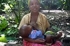 El término lactancia describe la secreción de leche de las glándulas mamarias y el período de tiempo que una madre amamanta para alimentar a sus crías. El proceso ocurre naturalmente en todas las hembras de mamífero después del embarazo (véase embarazo humano), aunque su origen es anterior a los mamíferos.[1] En los seres humanos, el proceso de alimentación con leche también se llama lactancia materna o amamantamiento. Los bebés recién nacidos a menudo producen algo de leche de su propio tejido mamario, conocida coloquialmente como leche de bruja.