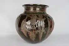 Ladi Kwali (16 de marzo de 1925-12 de agosto de 1984) [1] fue una ceramista nigeriana, distinguida con la Orden del Níger y miembro de la Orden del Imperio Británico. Ladi Kwali nació en el pueblo de Kwali en la región de Gwari, al norte de Nigeria, donde la alfarería era una ocupación entre las mujeres nativas.[2] Aprendió a hacer cerámica de niña de la mano de su tía, utilizando la técnica tradicional del urdido. Hacía grandes cántaros para el agua, ollas de cocina, cuencos y frascos con rollos de arcilla, golpeados desde el interior con una paleta plana de madera. Los decoraba con estilizados motivos geométricos y figurativos incisos como escorpiones, lagartos, cocodrilos, camaleones, serpientes, pájaros y peces. [3] Imprimía los dibujos en la parte superior de las figuras haciendo rodar pequeñas ruletas de cuerda retorcida o madera con muescas sobre la superficie de la arcilla, unas veces como bandas horizontales y otras en paneles verticales. [4] Las ruletas consistían en pequeños cilindros de madera dura, de dos o tres pulgadas de largo y media pulgada de diámetro, con muescas en patrones rectos, oblicuos o paralelos. [5] Las vasijas de barro y las técnicas decorativas se remontan al período neolítico.[5] Siguiendo el método tradicional de la región, se cocían en una hoguera de vegetación seca. Sus vasijas destacaban por la belleza de sus formas y decoración, y fue reconocida regionalmente como una alfarera eminente y talentosa. [6] Algunos de sus trabajos fueron adquiridos por el emir de Abuya, Alhaji Suleiman Barau, [7] en cuya casa las vio Michael Cardew en 1950.