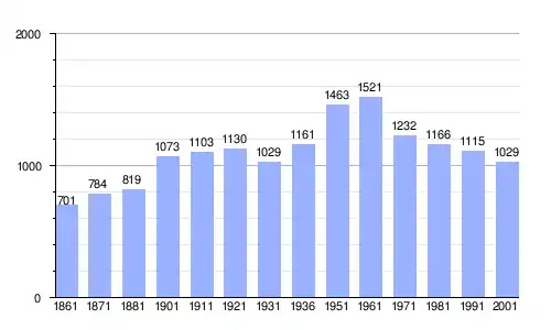 Gráfica de evolución demográfica de Laerru entre 1861 y 2001 |