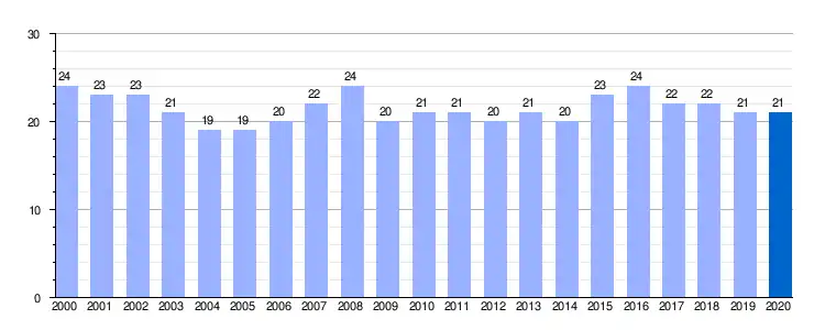 - Evolución de la población de la localidad de Lagartos en el siglo XXI[2]