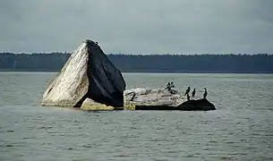 Del centro de la superficie lacustre surge una piedra llamada Lindakivi (que significa en estonio “la piedra de Linda”). En la mitología estonia se cree que era una de las grandes piedras transportadas por Linda para erigir la tumba de su marido Kalev en Toompea, sentándose en ella para llorar, sus lágrimas generaron el lago.