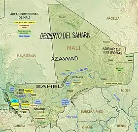 ![]() El lago Magui se encuentra en la parte sudoccidental de Mali, cerca de la frontera con Mauritania y Senegal, y drena hacia el sur. | ||