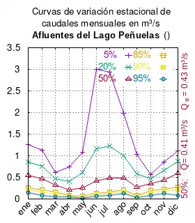 Curvas de variación estacional de la entrada de caudales al lago Peñuelas.