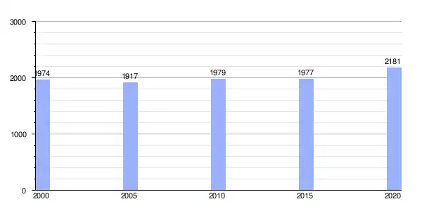 Gráfica de evolución demográfica de Lagostelle entre 2000 y 2020 |