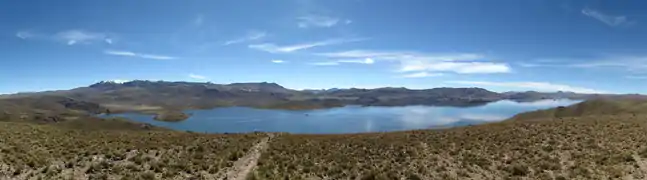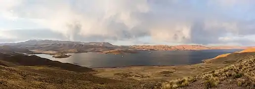 La laguna se encuentra rodeada de pajonal de puna. Se ha reportado 25 especies de aves.[1]