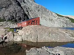 En la margen Este de la laguna se encuentra el Refugio Italia – Manfredo Segre, el cual es propiedad del Club Andino Bariloche. Este refugio construido en piedra, tiene capacidad para el pernocte de unas 50 personas.