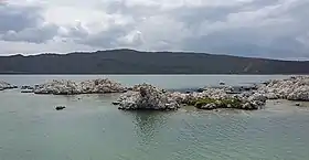 El lago se caracteriza por sus estructuras carbonatadas o tufas que sobresalen y se encuentran dentro del mismo, similares a los arrecifes coralinos, que conforman un anillo casi continuo paralelo a la línea de la costa. Estas estructuras son estromatolitos o microbialitos, en específico trombolitos. Los microorganismos, en estas estructuras son principalmente cianobacterias, que se desarrollan en capas. Se ha descrito que las cianobacterias de esta laguna son únicas en su tipo.