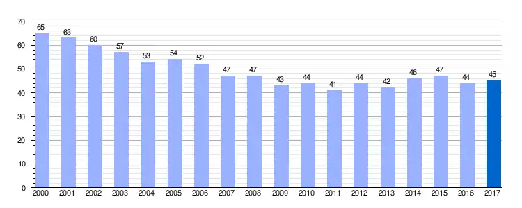Gráfica de evolución demográfica de Lagunas de Somoza entre 2000 y 2017 |
