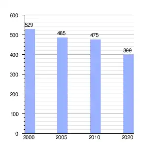 Gráfica de evolución demográfica de Lagunillas entre 2000 y 2020 |