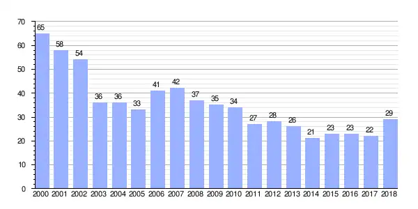 Gráfica de evolución demográfica de Lajobre entre 2000 y 2018 |