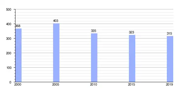 Gráfica de evolución demográfica de Lajosa (parroquia) entre 2000 y 2019 |