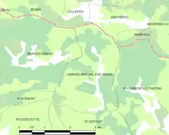 Está ubicada en la extremidad septentrional del departamento, a 15 km al norte de Belfort.
